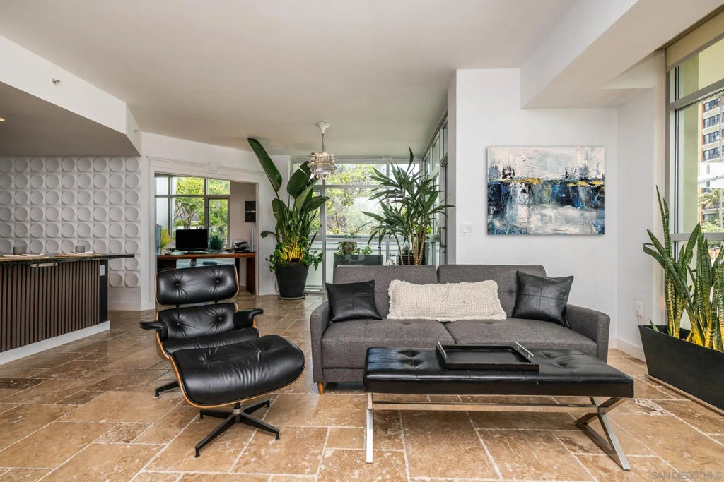 Natural Light Floods this eastern corner 2/2 condo with 3rd bedroom (currently displayed as an office). EV Charging has been added to the building, electric vehicle (EV) plug in's are now a breeze. Perfect for entertaining guests since the homes dual primary suites are separated by the kitchen and living quarters. With 2 walk in closets, a large pantry, & a coat/storage closet, the designer touches continue to impress. This home is in the iconic Egyptian Quarter of Hillcrest and features 12 foot floor to ceiling panel windows on three walls. Hillcrest Farmers Market is the buzz around here, every Sunday! The Egyptian, in Hillcrest, shares its history down Park Blvd and was once a Grummans Theater. There are neighboring murals, stained glass installations, Egyptian Revival Era Architecture, and Art Nouveau stylings. Local haunts of interest are the swanky vibes of InsideOUT for cocktails/dining. MJ's Cyclery for avid bikers and Balboa Park trails, Sunday's Hillcrest Farmers Market for farm to table options & the Newest Grand Dame of the block Good News non alcoholic cocktails across the street. The eastern end of this Hillcrest/North Park neighborhood has undergone a recent city development uplift with new shops, developments, and the new Pride Plaza being developed just a block away on Normal Street.