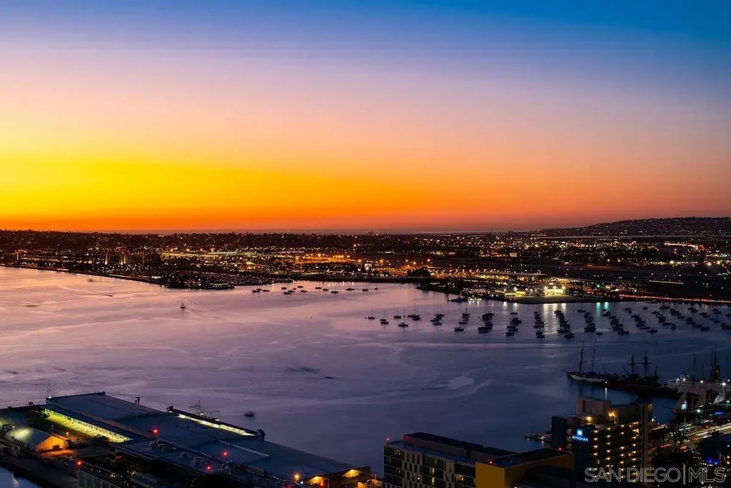 Your high-rise lifestyle awaits! Perched on the 28th floor, this west-facing residence showcases sweeping views of San Diego Bay, the Pacific Ocean, Point Loma, and the glittering city skyline. Your expansive private balcony sets the stage for iconic sunsets—perfect for relaxing evenings or stylish entertaining. Inside, elegance meets comfort with rich engineered wood flooring, a cozy fireplace, and a split-bedroom layout offering privacy on both sides of the living area. The gourmet kitchen is a chef’s delight, featuring stone countertops, Bosch and Thermador appliances, and recessed lighting. The primary suite is framed by beautiful blue-water views and offers a spa-inspired bath with a soaking tub, step-in shower, and dual vanities. Additional highlights include one of Electra’s widest parking spaces (nearly 15ft wide) located conveniently near the elevator, a storage unit, and access to one of Downtown’s most prestigious addresses. Experience the best of Columbia District living in this rare opportunity to own a piece of sky-high luxury.