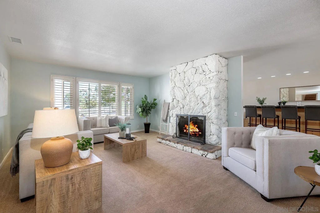 Escape to tranquility! This custom-designed home offers 4 spacious bedrooms (including one conveniently located on the main level), and 2.5 baths. The open-concept kitchen showcases upgraded cabinetry, quartz countertops, stainless steel appliances, and tile flooring. It seamlessly flows into the dining and living areas—perfect for both entertaining and everyday living. The living and family rooms include stone fireplaces and an abundance of natural light. There are dual pane windows throughout, two central air conditioners and 28 owned solar panels. Embrace the mountain views from your private pool. Multiple fruit trees on property and animal designation J. A perfect haven on a sprawling 1-acre lot.