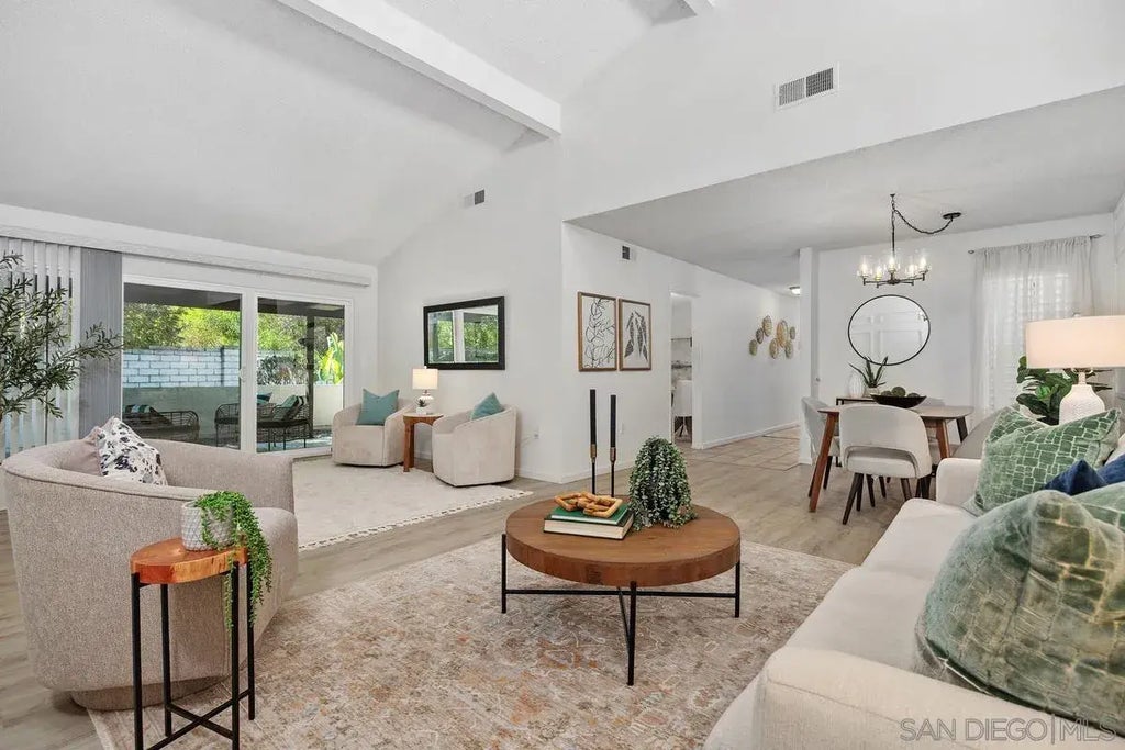 Property is listed in a value range of $599,000 - $629,000. Welcome Home! This lovingly cared for SINGLE STORY condo is located in a highly regarded 55+ community. The home is ready to bring you joy, convenience, space, hobbies and more! The property features 2 bedrooms, 2 full bathrooms, a spacious living room with vaulted ceilings, plenty of windows allowing in abundant natural light, fireplace, sprawling back patio area fully covered and enclosed, kitchen and bathrooms have been tastefully updated throughout the years, all newer window coverings, HVAC for central air and heat, luxury vinyl plank and ceramic tile flooring, loads of space including two separate closets in the master bedroom plus a small shed in the backyard and a HUGE shed directly off the covered parking space. The Seven Oaks community is a 55+ plus community that is meticulously maintained to ensure lusch landscaping, walking trails, a pool and spa, plus a gym!