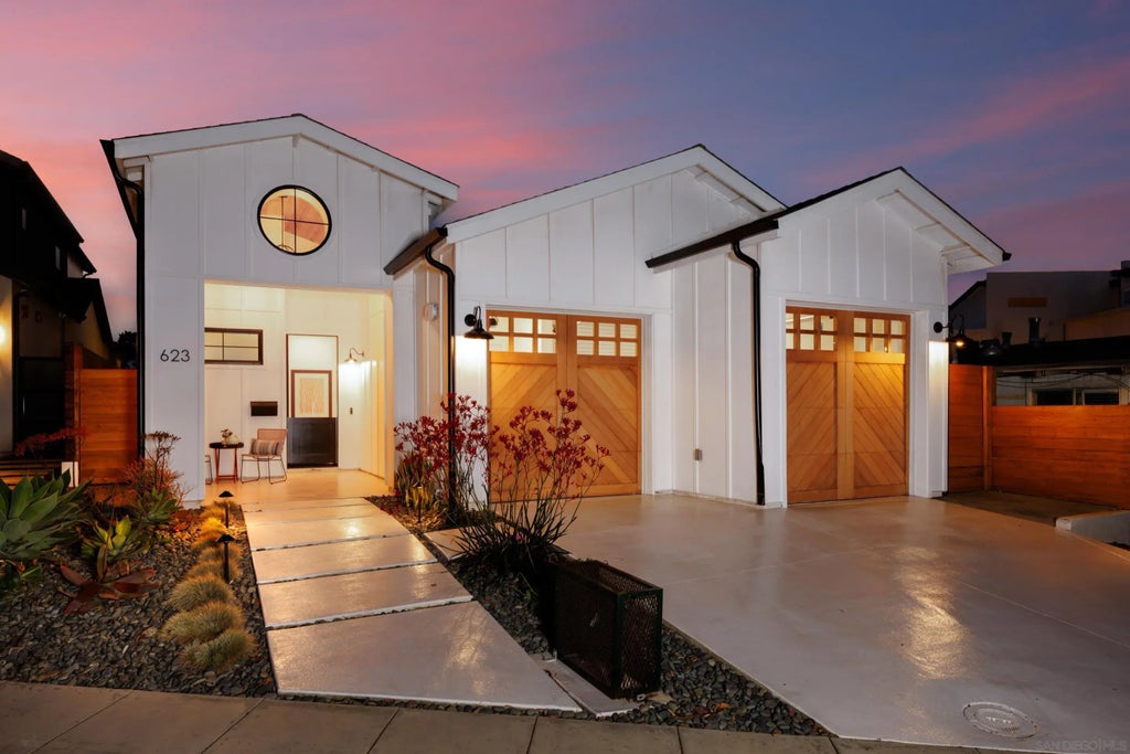 Discover unparalleled luxury at 623 Colima St, a custom-built smart home in the heart of La Jolla’s coveted Bird Rock neighborhood. Built in 2022, this masterpiece is steps from the popular shops and restaurants of La Jolla Boulevard and just blocks from world renowned beaches. This 4-bedroom, 4.5-bath residence redefines modern elegance with 20-foot ceilings in the great room and 10-foot ceilings throughout, tons of natural light and indoor/outdoor living at its finest. Seamlessly integrated smart home technology allows effortless control of lighting, climate, and entertainment systems. The chef’s kitchen boasts Wolf and Viking appliances, quartz countertops, and custom tile work. Expansive 9" wide plank white oak flooring and exposed wood beam ceilings add warmth and sophistication. Bifold doors open to a cozy backyard with custom landscaping and exterior lighting. The primary suite is a serene retreat with a spa-like bath, featuring a soaker tub, rain shower, and a massive walk-in closet. All bedrooms include en-suite bathrooms, with a second primary suite offering a private ocean-view deck for savoring sunsets. James Hardie board and batten siding and custom wood garage doors enhance the home’s timeless curb appeal. This smart home blends cutting-edge technology with coastal charm in one of San Diego’s most sought-after neighborhoods. Don’t miss your chance to own 623 Colima St—schedule your private tour today!