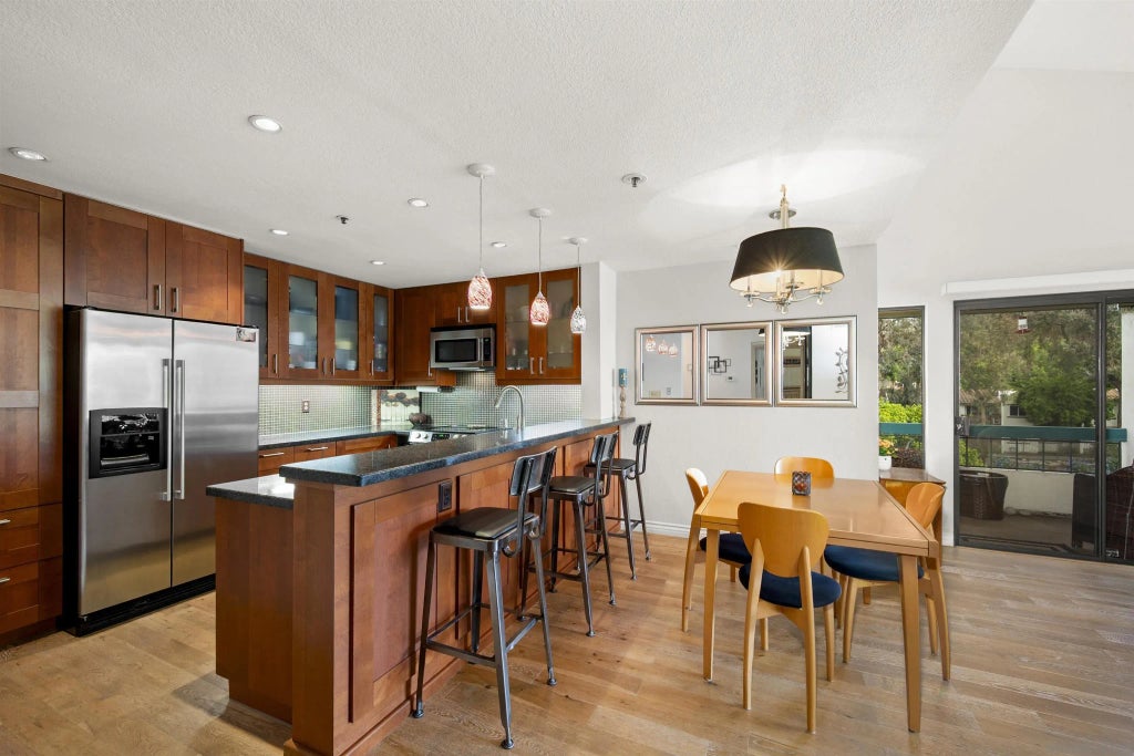 *Hidden Gem in the Heart of Tierrasanta!* Location, luxury, and lifestyle blend effortlessly in this beautiful top-floor corner unit, perfectly situated in Tierrasanta, San Diego’s Hidden Gem. This two-bedroom, two-bath condo has no shared walls, providing a peaceful and private retreat surrounded by lush greenery. The complex also has scenic views of the golf course. Step inside to discover vaulted ceilings, abundant natural light, and an open-concept living space accented by a cozy fireplace and a private balcony. The gourmet kitchen is designed to impress with rich cherry wood custom cabinetry, granite countertops, stainless steel appliances, a deep farmhouse sink, and elegant pendant lighting. The spacious primary suite boasts vaulted ceilings, a walk-in closet, and an extra mirrored closet, while both bedrooms have custom closets for optimal organization. Each bathroom has refined finishes, including sleek vanities and designer lighting. Additional amenities include in-unit laundry hookups and easy access to the elevator. Enjoy ample storage options, such as a private storage room off the balcony, extra storage in the second bedroom, and a dedicated storage locker next to the unit on the same floor. The home comes with one assigned parking space, plenty of guest and street parking, and the possibility to rent an additional assigned space through the HOA. Experience resort-style living with amenities like a sparkling pool, spa, and BBQ overlooking the golf course, tennis and pickleball courts, and a relaxing sauna. All of this is just moments from shopping, dining,