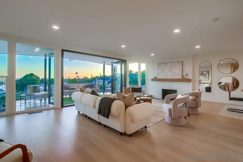 Welcome home to this stunning Mid-Century modern home that exudes all of the character and charm of the mid-century movement with panoramic views of the city. An entertainers dream from the moment you enter the custom white oak front door to the foyer and atrium, to the open concept living, kitchen and dining room complete with sunken fireplace and floor to ceiling windows and bifold doors to the large covered patio with sweeping sunset views to the west. Additional features include quartz counters, large peninsula with waterfall edge, primary suite with tons of natural light and views, dual shower heads, and designer tiles, secondary rooms with Jack and Jill bath, large family/bonus roof with fireplace, bar, and bifold doors opening to your spacious backyard, with covered patio and room for whatever you can dream! Houses with this much architectural beauty don't come around often. Don't miss this one!