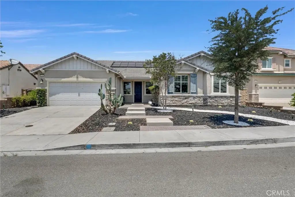 Welcome to this stunning single-story gem in the charming cul-de-sac of Harvest Villages with no HOA fees! This spacious and thoughtfully designed 5-bedroom, 3.5-bath home offers an elegant open-concept layout perfect for modern living. The primary suite is a true retreat, featuring a luxurious bathroom with dual vanities, a soaking tub, a separate shower, and a large walk-in closet with built-in shelving. A second primary bedroom with its own private ensuitealso with dual sinks and a walk-in closetoffers flexibility for multigenerational living or guest accommodations. In addition to the five generous bedrooms, theres a versatile bonus room ideal for a home office, gym, or playroom. The dedicated laundry room includes a washer and dryer for added convenience. Enjoy the practicality of a 2-car attached garage, providing secure parking and additional storage space. Step outside to a clean, open backyard perfect for entertaining, playtime, or simply enjoying the sunshine. Located just minutes from shopping, dining, and entertainment, this home offers quick access to the 10, 15, and 60 freeways, making commuting a breeze. Dont miss your opportunity to own this beautifully maintained home in a peaceful, well-connected neighborhood.