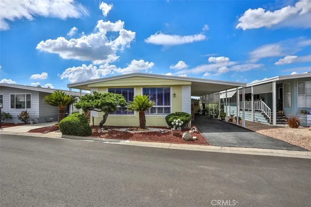 BEAUTIFUL LA VERNE DOUBLE WIDE MOBILE HOME WITH MOUNTAIN VIEWS!! FOOTHILL TERRACE MOBILE HOME PARK / WELL MAINTAINED 55+ PARK LOCATED IN THE HEART OF LA VERNE / THIS DARLING HOME HAS TWO BEDROOMS AND TWO BATHS / LARGE LIVING ROOM WITH LOTS OF WINDOWS AND PLANTATION SHUTTERS / BRIGHT AND AIREY / NEW CARPET / NEWER VINYL FLOORING / NICE KITCHEN WITH REFRIGERATOR / DISHWASHER THAT STAY / FORMAL DINING ROOM - TABLE AND BUFFET STAY / LAUNDRY AREA INSIDE-WASHER AND DRYER STAY / LARGE LONG COVERED PATIO AND NEW SHED THAT STAYS!!! LARGE WOOD DECKING ON BOTH SIDES AND PATIO DECKING ON BACK PATIO / NICE LARGE GARDEN AND GRASS AREA AND ADDITIONAL SHED FOR TOOLS TO STAY / NICE BREEZE AND MOUNTAIN VIEWS FROM ALL ANGLES / SHOWS LIKE A MODEL / ALL FURNITURE STAYS / COMMUNITY AMMENITIES INCLUDE: SWIMMING POOL / GYM / CLUB HOUSE AND LIBRARY. THIS COMMUNITY IS A WONDERFUL PLACE TO LIVE AND ENJOY!!