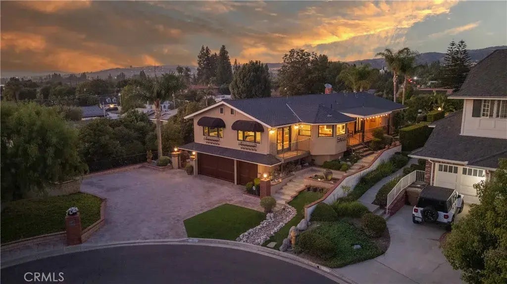 Tucked away at the end of a quiet cul-de-sac, this Yorba Linda estate feels less like a house and more like a sanctuary. On nearly 17,000 square feet of land, surrounded by a private orchard of citrus and avocado trees, offering a blend of space, beauty, and everyday comfort. Step inside the 4,500-square-foot residence and youll notice right away how light lives here. Morning sun floods the east-facing kitchen, where a Viking range, Sub-Zero integrated refrigerator, and Wolf oven make every meal feel gourmet. In the afternoons, golden light pours into the living room, warming the travertine floors and highlighting the wood inlay at the entry. The vaulted great room with exposed beams and a stack-stone fireplace invites gatherings. French doors open to an oversized front patio, one of four outdoor spaces designed for dining, entertaining, or simply pausing to watch the day unfold. With four bedrooms and three bathrooms, thoughtful design is everywhere. Two Jack-and-Jill bedrooms each open to private balconies overlooking the pool. The guest bath on the main level features a freestanding tub, a quiet retreat of its own. Upstairs and downstairs laundry rooms bring convenience to daily life, while a full lower-level primary suite offers privacy, complete with a bay window, spa-like bath, and walk-in closet. Outdoors, the property is both elegant and practical. A sparkling heated pool with spa and waterfall is framed by the orchard, which avocado, orange , lime, apple, plum, and pomegranate trees. The grounds are fully fenced, zoned for 2 horses, and designed with space for RVs,