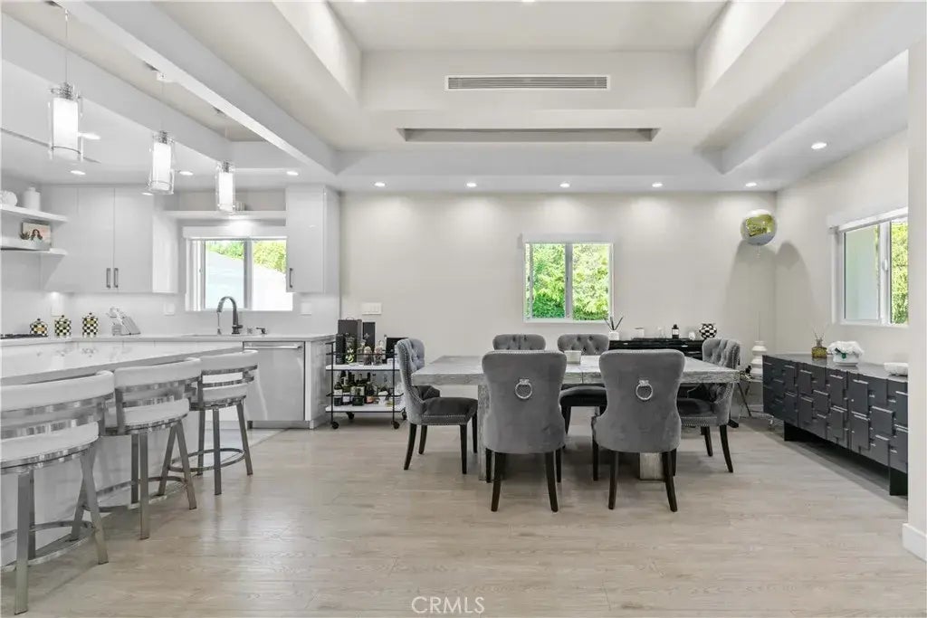 This beautifully fully remodeled 3-bedroom, 2-bath home combines modern design with everyday comfort. Step inside to an open-concept layout where the chefs kitchen flows seamlessly into the dining and living spaces. The kitchen features sleek white cabinetry, quartz countertops, a spacious island with bar seating, and contemporary pendant lightingideal for both entertaining and casual family meals. The dining area is framed by tray ceilings, recessed lighting, and large windows that fill the space with natural light, creating a bright and welcoming atmosphere. Elegant flooring runs throughout, complementing the homes clean lines and modern finishes. Good sized bedrooms, including a private primary suite, offer comfortable retreats with updated bathrooms featuring stylish tile work and fixtures. Junior ADU permits and drawings are available, it is approved and is ready for the new buyer to build. Located in a desirable neighborhood, this home is close to schools, shopping, dining, and freeway access, making it the perfect balance of convenience and style.