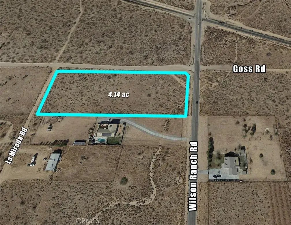 4.14 ac (3.64 ac net) vacant lot at the corner of Wilson Ranch Rd and Goss Rd in Phelan. Paved road access with water and power available. Fantastic views of the mountains. Drainage easement through corner of property along Wilson Ranch Rd. Zoned for 2.5 ac lots with possibility of doing a split.