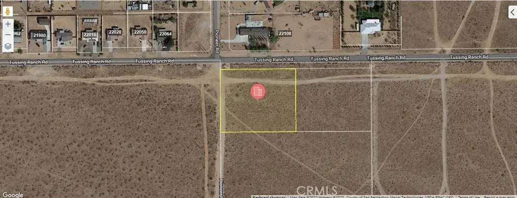 Beautiful Flat corner lot off paved Rd. Tussing Ranch Rd. Over 2 Acres (As per County Records). Power line runs by the front of the lot. Water Hydrant just across the street, buyer must verify with the Town of Apple Valley whether a water connection is available or if a water well will be required to build . Land is located across the street from 22108 Tussing Ranch Rd. Apple Valley, CA . Please note that the address in the listing description is not an address assigned by the City of Apple Valley, it is only provided as a reference. This land has very nice views of the Marianas foothills in Apple Valley, CA , Great location. not too far from Shopping and schools and public transportation. Perfect location to build your new home or setup a ranch. Buyer Must verify all information regarding the property including, but not limited to Zoning, Availability and Costs of Utility Connections, Property Boundaries, Lot square Footage, Permitted Uses, etc; Seller may carry back with $30,000. down payment. Balance payable in three years or sooner with no pre-payment penalty @ 9.0% interest. No Income / Credit Check, but lender's title insurance will be required.