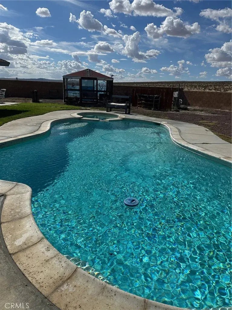 Spacious Cul-de-Sac Retreat with Resort-Style Amenities Nestled at the end of a quiet cul-de-sac, this expansive residence offers just under 3000 sq ft of flexible living space. With 3 spacious bedrooms and 2 full baths, plus bonus areas that can easily convert into a 4th and even 5th bedroom, the layout is ideal for families, remote professionals, or multi-generational living. Step outside to a private backyard designed for entertaining and unwinding. Enjoy a sparkling in-ground pool and spa, a regulation-size horseshoe pit, an enclosed gazebo sitting area, all fully enclosed by a 4'-5' block wall with solar lighting-perfect for pets, gatherings, and serene evenings under the stars. If off-roading is your fun, you are just steps away from desert access for outdoor recreational fun. Beyond the property, the HOA delivers an impressive suite of amenities: unlimited golf, a community pool and spa, tennis courts, pickleball, equestrian stables, 2 lakes for water fun and more. Whether you're seeking active recreational or peaceful retreat, this home offers the best of both worlds. Inside the open-concept design flows effortlessly between living, dining, and kitchen spaces, with abundant natural light and room to personalize. With lifestyle, location, and leisure all in one, this home is a rare opportunity to live expansively!