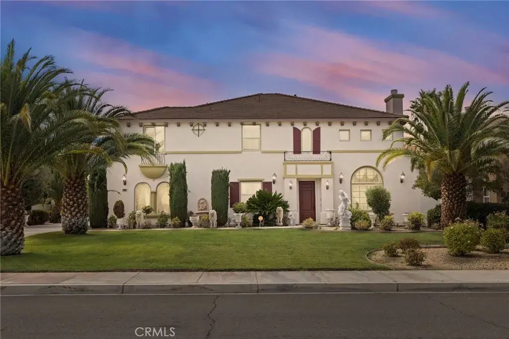 Welcome to a true masterpiece in Apple Valley! This stunning 7-bedroom, 6 -bathroom luxury estate perfectly blends timeless elegance with breathtaking views. From the moment you step inside, youll be captivated by the soaring ceilings, exquisite finishes, and the meticulous attention to detail in every corner. Plus an office and a mini suite bedroom downstairs. The grand living room showcases crystal chandeliers that sparkle with natural light pouring through the tall windows, while custom drapery, ornate gold accents an atmosphere of regal sophistication. Every space in this home reflects elegancefrom the hand-carved furniture and artful wall dcor. The home features a wired sound system throughout, perfect for entertaining or setting the mood in every room, along with a built-in intercom for convenience and security. The open layout flows seamlessly into multiple living and dining area, making it ideal for both intimate family gatherings and grand-scale entertaining. Additional bedrooms provide comfort and privacy for family or guests. Step outside to discover your own private paradiseperfect for enjoying High Desert sunsets and the surrounding beauty. This estate is more than just a home; its a statement of luxury and elegance in the heart of Apple Valley.