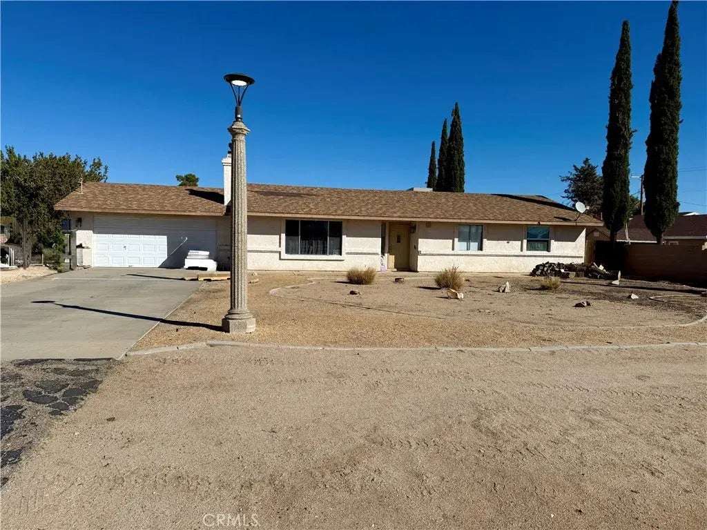 Beautiful Hesperia Home recent upgrades 3 bedroom 2 baths, kitchen with a lot of newer cabinets, coriander counter tops, stainless steel appliances microwave, stove, dishwasher, inside laundry room newer washer and dryer included tile floors newer inside paint, nice living room with a fireplace, French door from dining area to outside cover patio a lot of concrete, central air and heat plus a widow evaporative cooler, rock landscaped, nice shed for storage fenced back yard
