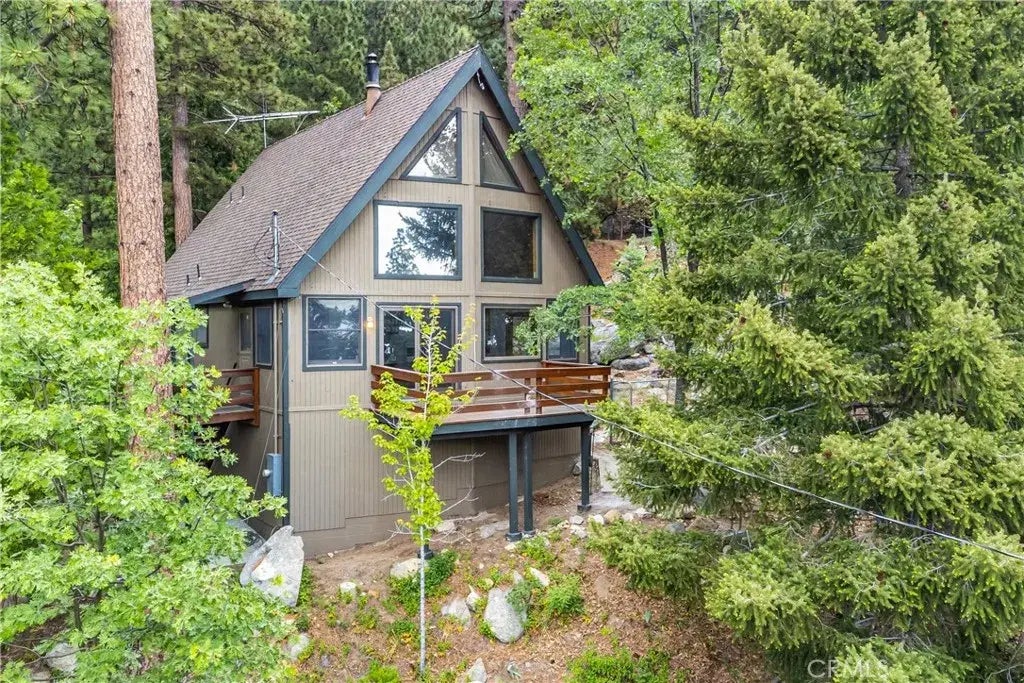 Welcome to your mountain retreat in Angelus Oaks! This beautiful home offers 3bed, 2bath, an open concept kitchen to a spacious living area, with a cozy wood burning stove & a window seat within the bay window in the living room, a newer wall heater unit, a balcony off the living area with stunning scenic views, lots of windows all around that offer natural light, 360 views through the guest bedroom bay windows, indoor laundry room, a stunning spiral staircase that leads up to the primary bedroom/bathroom offers a jetted tub, separate shower & a sky light with MAGNIFICENT views, a spacious/finished attic area above the primary bedroom walk-in closet for extra storage. Detached 2 car garage, with an additional finished storage area above the garage, plus an unfinished build-up area with ample space for you to use however you'd like. This property spans two expansive lots with a large fenced in area. This is a unique opportunity for either a peaceful primary residence, a vacation home, or potential investment property nestled in a serene Angelus Oaks community on a cul-de-sac road. This property is within minutes of the country store, gas station & restaurant & within 20 minutes of Jenks lake! Come check out this great opportunity & check out the 3D Tour ;)