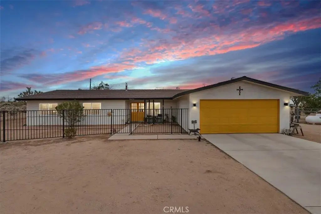 Dreamy desert oasis located on 1.25 acres in Yucca Valley! This gorgeous home is just 10 minutes from Joshua Tree National Park & minutes from restaurants, shops, and entertainment! The home is remodeled and move-in ready with newer HVAC, Energy star rated windows, porcelain tile flooring and more! The expansive lot offers endless possibilities with a large covered patio, spacious shed, and a reliable Generac backup generator, so youre always prepared! Step inside through double doors to an open living room, complete with cozy fireplace. The remodeled kitchen features elegant quartz countertops, recessed lighting, brand new stove, and ample cabinetry. Upgraded porcelain tile floors continue throughout the home, extending to the generously sized bedrooms with expansive desert views from each room. The spacious primary bedroom offers two closets and an ensuite bathroom with a newly tiled shower and tub. The hallway bath has also been updated with an accessible walk-in shower. Enjoy privacy and natural beauty with two mulberry trees, several iconic Joshua trees, and a solar-powered motorized gate completing the serene surroundings. Furniture negotiable!
