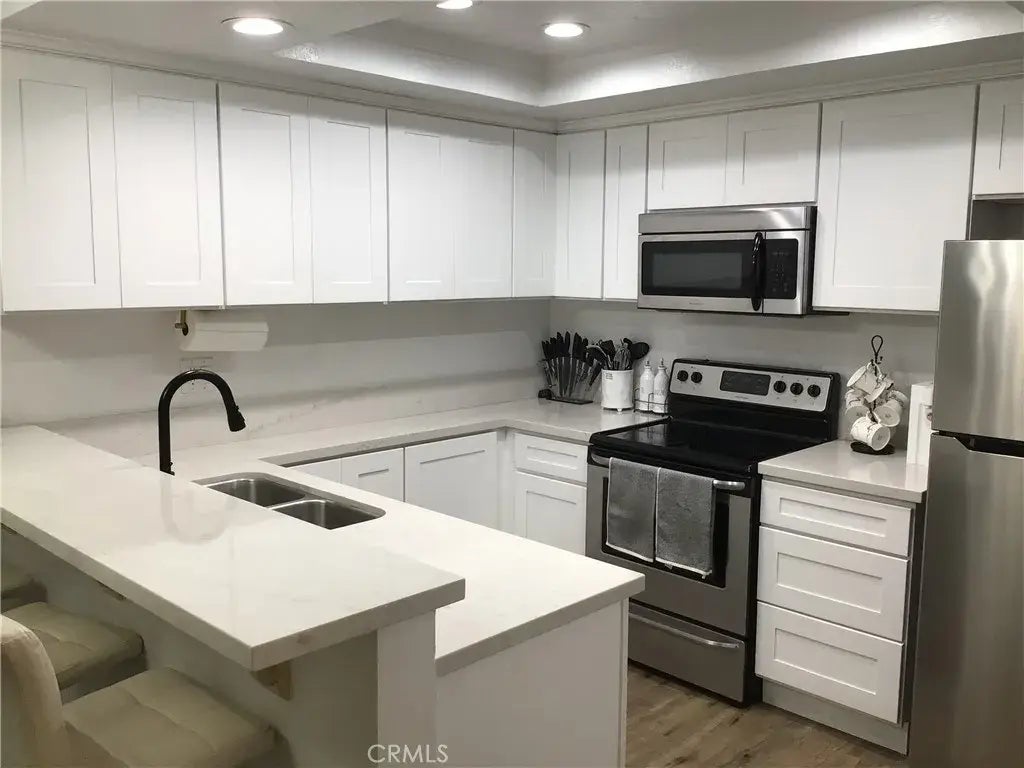 Step into this beautifully maintained 2-bedroom, 2-bathroom condo, featuring a fully renovated kitchen with modern finishes and brand-new laminate flooring. This home offers the perfect blend of comfort and convenience in a great location, close to shopping centers and stunning beaches. The spacious living room includes a cozy gas fireplace, perfect for chilly evenings. The kitchen has been thoughtfully updated with quartz countertops, sleek new cabinetry, and a functional breakfast bar. For added convenience, the unit comes equipped with a washer and dryer combo. The main bedroom boasts a private walkout patio. Residents can also enjoy Crystal Cays amenities, including pools, a dog park, and access to the scenic Colinas Bluff Trail. Come see this beautiful condo for yourself!