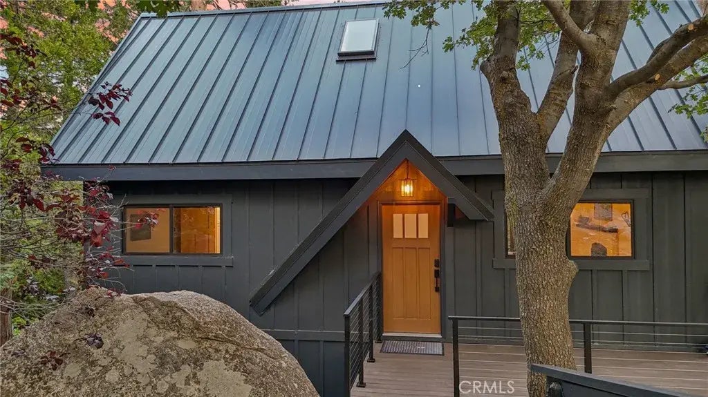Stunning Fully Renovated Lake Arrowhead Home with Lake Rights & Unobstructed Views, including Blue Jay Bridge! This incredible home has been completely rebuilt down to the studs with over $400,000 in top-quality upgradesdesigned to be fire-wise, energy-efficient, and low-maintenance, while offering modern comfort and timeless mountain charm. Go inside to find an open floor plan with Bellawood white oak engineered wood flooring, a beautiful gas fireplace, and panoramic views from every angle. The chefs kitchen boasts marble counters, induction stove (gas hookup available), retro fridge, drawer microwave, and custom cabinetry. Bathrooms are elegantly designed with Delta split-control rain showers, sleek fixtures, and thoughtful details. No expense was spared in making this a turnkey, worry-free mountain retreat. Upgrades include: Solid-core knotty alder doors and trim, Nu-Ray 24-gauge metal roof with 8" foam insulation & skylight (50-year rated), Hardi board & batten siding, pre-painted for long-term durability, Milgard C650 fiberglass windows & patio doors, Timbertech Class A fire-rated decks with View Rail railings, PEX plumbing with Moen Flo smart water shutoff, 220 amp panel with updated electrical & lighting, HVAC with multi-zone Ecobee controls, Navien hydronic furnace & GE Connect AC, Whole home generator for peace of mind. The exterior is equally impressive with new retaining walls, French drains, plus the spacious deck perfect for enjoying the fresh mountain air and sweeping views. Located just minutes from Lake Arrowhead Village, Blue Jay, and the lake itself, make