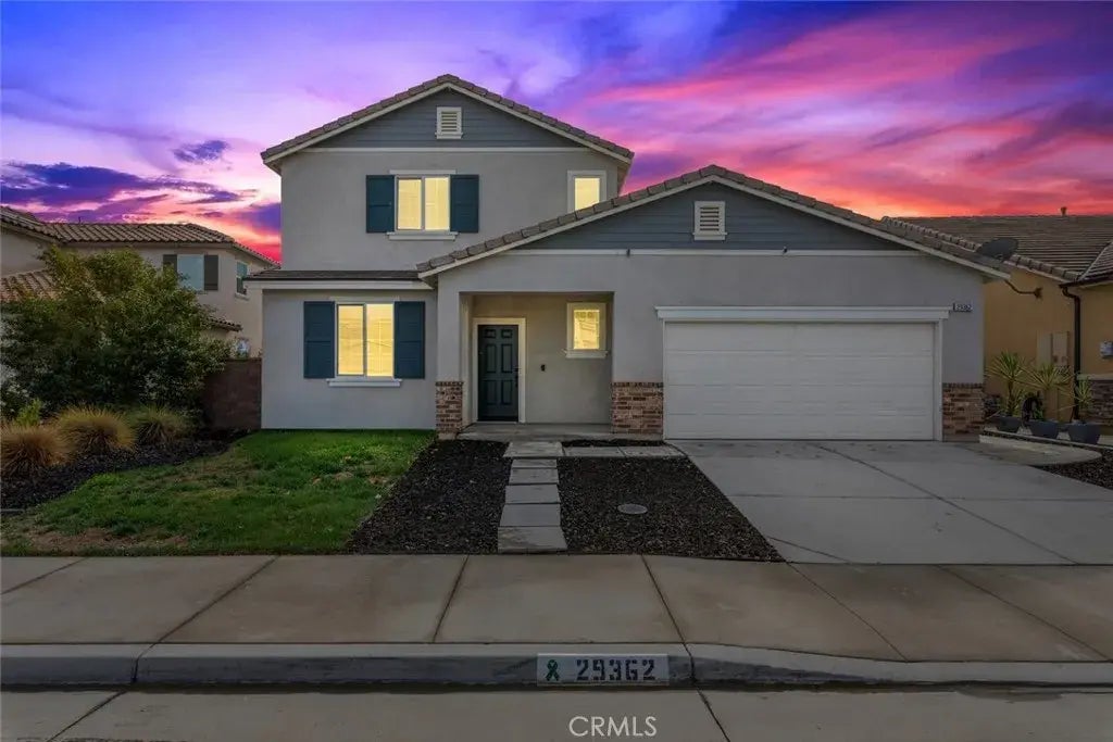Welcome to 29362 Wild Lilac, located in the highly sought-after Summerly community of Lake Elsinore! This beautifully maintained 4-bedroom, 3-bath home offers 2,309 sq. ft. of modern living space, including a convenient downstairs bedroom and bath perfect for guests or multi-generational living. Step inside to find brand new interior paint and upgraded vinyl flooring throughout (no carpet anywhere!). Enjoy an open-concept floor plan with a spacious kitchen featuring white cabinetry, granite countertops, stainless steel appliances, and a large center island ideal for gatherings and meal prep. The home has a large pool-sized backyard, offering endless potential for outdoor fun and entertaining. Additional highlights include leased solar for energy efficiency and a prime location just a short walk to the community clubhouse and pools. This home is move-in ready and waiting for its next owner to enjoy the Summerly lifestyle close to parks, golf, shopping, and more!