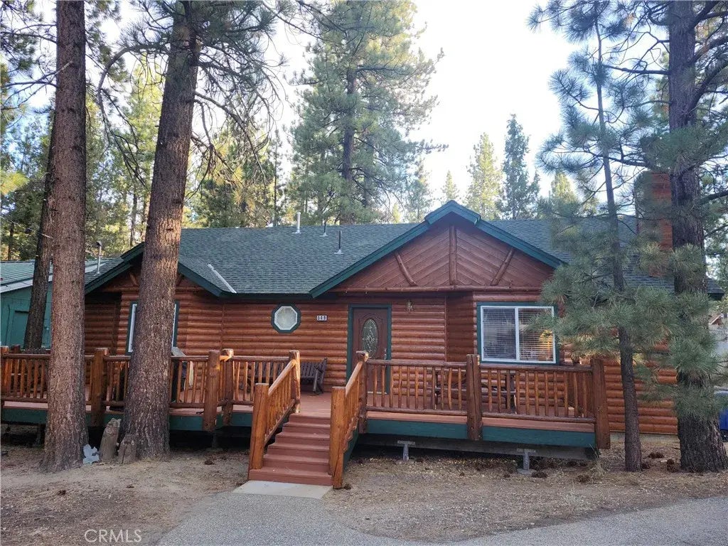 Significant price reduction!! Brand new sanding/recoating of the log siding, deck, door, & railings. Owner says there is potential space for the construction of a 2-car garage. Come see this LOG-style home nestled in the quiet Pinewood Estates neighborhood of Big Bear. Enjoy cozy times centered around the corner stone fireplace in the open great room. Log and pine tongue-and-groove accents throughout give the "mountainy" feeling visitors crave. The many conveniences and features include: dishwasher; laundry area; furnishings; spatious level pine-treed corner lot; front and back decking; hiking trails & ski areas nearby; and a short distance to the Convention Center (Oktoberfest, etc.) and SnowPlay tubing. Don't miss this 3 bedroom/2 bath, 1-story home, so centrally located, yet certainly off the beaten path.