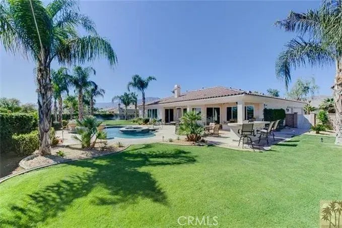 Located in the amazing gated community of Desert River Estates, this home is nearly 3,200 square feet, 4 bedroom, 3.5 bath and is complete with a separate office and a three car garage. The many upgrades, include gorgeous travertine flooring, new custom paint, crown molding and expanded baseboards throughout. The oversized great room has a beautiful fireplace, alabaster sconce lights and full surround sound. A gourmet kitchen that would make any chef proud is complete with rich wood cabinetry, built in wine refrigerators, granite counters and stainless steel appliances. The large Primary Suite has double doors, tile flooring and travertine in the bathroom with two large closets. There is tile flooring in all bedrooms. The rear yard is an entertainers delight with a large covered logia, speakers, sparkling pool and spa, built in BBQ island, all surrounded by lush landscaping and plenty of up lights. Close to schools, shopping and restaurants.