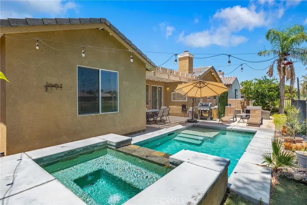 Opportunity knocks! This is the sale of a fully furnished 4 bedroom, 2 bath home tucked away inside the gated Indian Palms Country Club which features a golf course, restaurant and gym. This homes brings you the flexibility of having a nice pool home to live in or the investment aspect of it as a successful Airbnb. The current owner has been able to do both, enjoy it for personal use and also host it as an Airbnb due to it's close proximity to Coachella grounds. Step inside and you'll find a nice open layout for your dining and hosting experience. The floors are tiled for easy care. Just behind this area is the kitchen which has a family room and a tall table to not miss a moment during your stay. The 4 bedrooms are split accordingly with a Primary bedroom on it's own wing of the house, a huge bathroom that features a shower and tub combination with his and her vanities and make up counter. The other 3 bedrooms are properly proportioned in size. There is a 2 car garage and a separate 1 car garage for extra storage if needed. The backyard is a great oasis with a pool and Jacuzzi overlooking the golf course, a covered patio to hang out and lounge area to catch some sun. You're just intime to purchase this home and start to enjoy it this summer, come by and take a look!