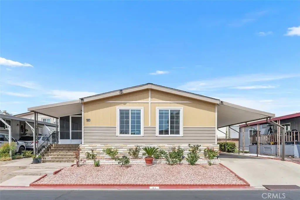Beautiful 2-bedroom 2 bath mobile home located in the exclusive Rancho Ontario. This home offers tons of updated features including a tankless water heater, new furnace, newly remodeled kitchen and newly landscaped. Renovated amenities await you offering a heated pool and spa opened year-round, a hall to host any event, our clubhouse offers a billiards room, card table room, a fitness room as well as a gym or lounge area to just sit and relax. The Park also offers an active area with two pickleball courts, bocce ball and we didn't forget about your fur babies, two dog parks. Don't miss out on touring and calling it home.