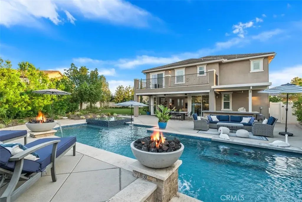Offering over 4,400 sqft of luxury living with 5 bedrooms and 4.5 bathrooms, this stunning estate sits on the largest lotover 1/3 acreat the end of a cul-de-sac in the highly sought-after gated community of Roripaugh Ranch. From the moment you arrive, the curb appeal and custom design set this home apart. Inside, a private office just off the entry provides the ideal work-from-home setup or could easily serve as a 6th bedroom. A formal living room with soaring ceilings and a custom staircase creates an inviting and elegant first impression. Continue down the hall and prepare to be amazed as the home opens into a wide-open great room showcased by 16-foot bi-fold doors that bring the outdoors in. The chefs dream kitchen features a massive quartz island, KitchenAid range, double ovens, built-in refrigerator, glass-front cabinetry, custom backsplash, butlers pantry with wine fridge, and a Costco-sized walk-in pantry, all seamlessly connected to the informal dining and living spaces. The great room centers around a beautiful stone fireplace flanked by built-ins, setting the stage for luxury and comfort. Step outside to the entertainers paradise: a full-length California room with built-in BBQ overlooks the sparkling pool with raised infinity-edge spa, elevated tanning deck, and over 2,200 sqft of artificial turf with sprinklers for year-round enjoyment. At night, the backyard comes alive with dual fire bowls, a built-in fire pit, and Hollywood hedges creating a private wall of greenery. This home also features an attached second-generation suite with its own exterior entrance, o