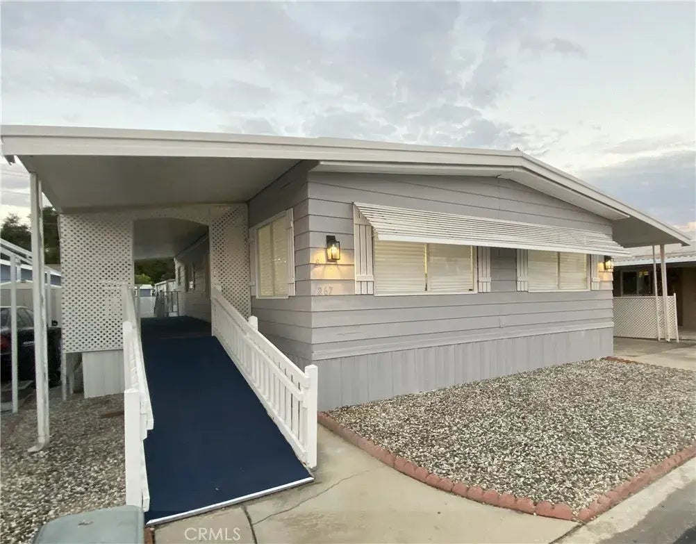 Beautifully Updated Home in Resort-Style 55+ Community! Welcome to this charming and cozy 2-bedroom, 2-bath manufactured home located in the highly desirable Colonial Country Club golf community of Hemet, CA. Recently updated with a modern look, this home features fresh interior and exterior paint, new luxury vinyl plank flooring, refinished cabinets and countertops, recessed lighting, and new stainless steel kitchen appliances. The kitchen includes a center island with pendant lighting, perfect for entertaining or casual dining. Enjoy year-round comfort with central heating and air conditioning. The exterior offers a covered front porch with ramp access, a covered carport, and a storage shed for convenience. This pet-friendly community offers resort-style amenities, including an 18-hole executive golf course, 6 new pickleball courts, swimming pool and spa, indoor shuffleboard courts, billiards room, ballroom, on-site hair salon, fitness center, bridge and card rooms, and horseshoe pits. Conveniently located near shops, restaurants, parks, cafs, and the local farmers market, with easy access to Los Angeles, Orange, and San Diego counties, Palm Springs, nearby wineries, and local casinos. Enjoy scenic mountain views and the active lifestyle this vibrant community has to offer!