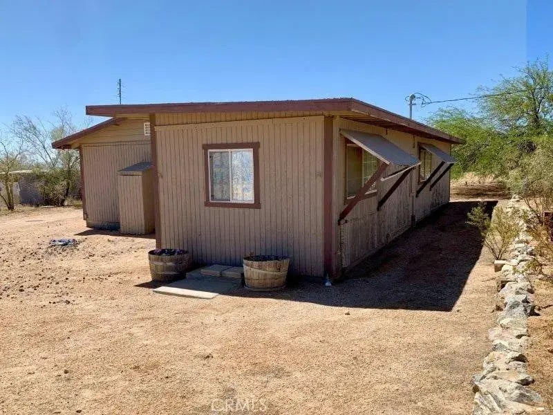 Endless potential on 2.5 acres of flat, usable land! Welcome to 55525 Ornelas Ln in Landers! This 1-bedroom, 1-bath home offers approximately 1,085 sq. ft. of living space (965 sq. ft. per assessor) on a spacious 2.5-acre lot. Features include a large bonus room that could be converted into additional bedrooms, a cozy family room, small kitchen with dining area, enclosed porch, and covered front porch. Detached covered carport includes a small office and storage room. All-electric home with public waterno propane needed. Home needs some updating and repairs but offers great potential as a desert getaway or full-time residence. Zoned HV/SD-RES, allowing for single-family use and potential accessory structures. Conveniently located near Joshua Tree and Yucca Valley. Buyer and buyers agent to verify all information, including permits, additions, square footage, zoning, and property use to satisfy themselves.