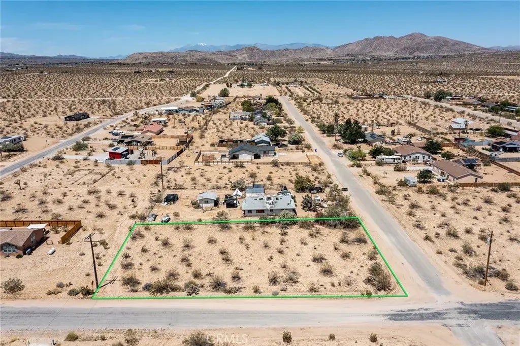 Excellent lot in established neighborhood in North Joshua Tree, with water mains in the road and electrical lines nearby for utilities. Located off of Sunfair Road, with access to wilderness hikes of motorsports on the dry lakebed. Views of the mountains in Joshua Tree National Park to the south. Only minutes to hospital and a short distance further to downtown. Parcel is just under one-half acre, allowing for several building sites and a large yard. Note: Green lines demarcating boundaries in pictures are approximate; property has not been surveyed. APN: 0605-071-11