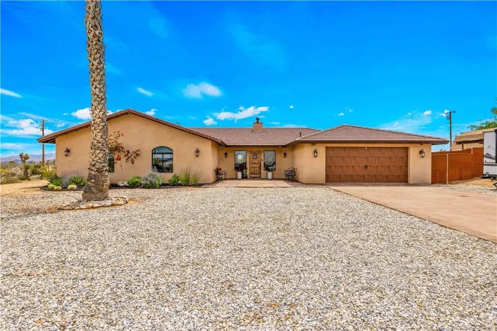 Spacious 4-Bed, 3-Bath Home on a Large Lot with PAID SOLAR, Stunning Views and Upgrades Throughout! Welcome to this beautifully maintained 4-bedroom, 3-bathroom, 2,351 sq ft home situated on a generously sized lot offering plenty of parking, a finished garage(with additional large fully finished bonus room), and unmatched desert and mountain views. As you arrive, youre greeted by a charming courtyard-style entry with a cozy sitting area. Step inside to a spacious entryway featuring a freestanding wood-burning stove and luxury vinyl plank flooring that flows throughout the home, creating a warm and inviting atmosphere. The heart of the home is the large, updated kitchen, complete with granite countertops, stainless steel appliances, double oven, island with sink and dishwasher, built-in wine fridge, walk-in pantry and abundant cabinet and counter space. The kitchen is fully open to the dining and living areas, all of which showcase views of the backyard and surrounding landscapeperfect for entertaining or simply relaxing at home. Each of the four bedrooms offers great space, natural light and tons of storage with large closets. The gorgeous primary suite has direct access to the backyard through a new glass slider and features a luxurious ensuite bath with a double sink vanity, walk-in shower, and a soaking tub with a view. There is also a junior suite that has its own ensuite bathroom with a low-step walk-in shower. Step outside to your own private retreat: a screen-enclosed covered patio, a gazebo with a BBQ area, and an unobstructed view of the stunning desert and mountai
