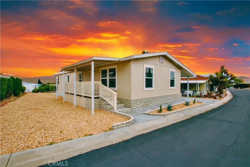 Don't miss this gorgeous, recently built mobile home that offers the perfect blend of modern comfort and timeless design! Nestled in the peaceful Gates of Spain mobile home park, this spacious unit features brand new appliances, double pane windows, three bedrooms, two bathrooms, washer/dryer hookups, boasts a bright, spacious layout with a like-new feel throughout. This unit is perfect for someone interested in settling into a quiet, tranquil 55+ community. Weather you are looking forward to relaxing on your porch surrounded by blue skies, taking a quick drive to the local shops, or going for a hike, this home not only has it all, it is centrally located in the heart of Yucca Valley offering easy access to everything you need for comfortable daily living. Seller financing available!