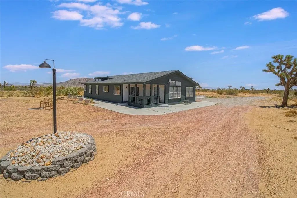 2 HOMES ON 5 ACRES INCOME POTENTIAL + INCREDIBLE VIEWS! Heres your rare chance to own a versatile 5-acre desert retreat in Landers, with two separate homes and stunning panoramic views of the surrounding Mojave landscape. Whether you're looking to live in one and short-term rent the other this unique setup delivers comfort, flexibility, and opportunity under the wide-open desert skies. The main residence is a spacious triple-wide 3-bedroom, 2-bath manufactured home on a permanent foundation, offering over 2,000 square feet of thoughtfully designed living space. Abundant clerestory windows and plantation shutters fill the home with natural light, while thoughtful updates like laminate flooring, a stacked-stone gas fireplace, and a combination of central A/C and wall-mounted evaporative cooling ensure year-round comfort. The primary suite includes an extended sitting/reading room and a luxurious bathroom with dual sinks, a separate soaking tub, and standalone showerperfect for relaxing after a long desert day. The detached 3-car garage, nearly 1,000 square feet, includes its own bathroom and two storage rooms, ideal for workshop space or future conversion. Between the garage bays, a motorized-door breezeway creates a breezy lounge or game area with uninterrupted views of Goat Mountaina perfect setting for sunsets, gatherings, or peaceful solitude. Tucked to the side of the main home, a thoughtfully renovated 1-bedroom, 1-bath homestead cabin (approx. 620 square feet) complete with modern updates and rustic charm. This property is ideally located to experience everything Land