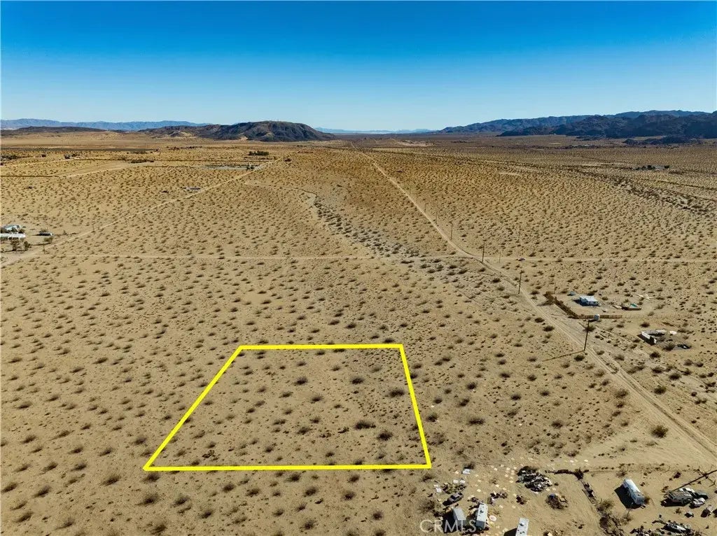 (Address is fictitious and used for marketing) Discover your slice of desert paradise on this 1.25-acre lot in Joshua Tree, offering mountain and expansive desert views. This flat terrain is perfect for a smooth building experience, whether you're envisioning your dream home, a vacation retreat, or an investment property. ADJACENT PARCEL is also for sale. The parcel is accessible via an unpaved road, with power lines conveniently running along the property for easy connection. The nearest water source appears to be located at 2 Mile Road and La Ferney Avenue, providing practical options for future development. Nestled in a serene setting, this residentially zoned lot provides the perfect blend of privacy and proximity, just a short drive from Joshua Tree National Park and local amenities. Dont miss the chance to create something extraordinary in this sought-after desert community! (GPS 3408'48.7"N 11616'02.9"W)