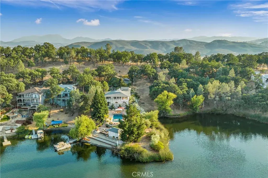 QuintessentialLakefront Estate situated on nearly1 acre (spanning 2 parcels) with a Private Peninsula, Incredible Outdoor Entertaining Space including a Pool & Spa, Boat house, Private Dock + Pontoon Boat, Bocce Court, Children's Playhouse and so much more! This 3 bed (+ 2 bonus rooms) 3.5 bath home has 2,524 SF of living space located in the thriving community of Hidden Valley Lake, just 20 miles north of Calistoga. Expansive lake and hillside views can be enjoyed upon entering the home. Timeless character throughout including gorgeous hardwood flooring, crown molding, custom window coverings, recessed lighting, tray ceilingsand surround sound speakers. The galley style kitchen has an abundance of storage, a propane range and 2 dining options in the breakfast nook or formal dining area just off the kitchen. The Living room offers a stately wood burning fireplace, built-in bookshelves & access to the covered wrap around deck. The primary suite found on the main level has an expansivewalk-in closet and outstanding views with bright light +an adjoining sunroomto relax in a peaceful setting. The ensuite bathroom offers double sink vanity, built-in storage unit and an extra large walk-in steam shower. 1/2 bath with pedestal sink on the main level. The lower level has a large family room, laundry suite, full bathroom and 2 additional bedrooms with ceiling fans. In an expanded area under the home you will find 2 additional guest bedrooms, a full bathroom, wine cellar/storage room and access to the lower deck that includes a spa, outdoor shower and built-in seating area. The detac