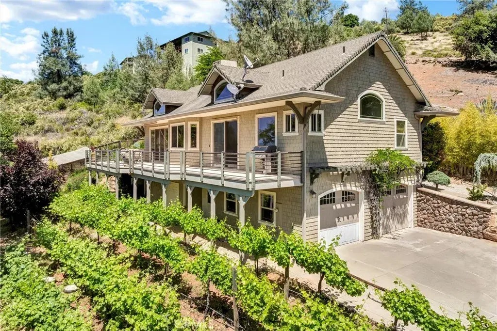 Experience Lakeside Luxury with Breathtaking Views! Step into the serenity and elegance of this expansive residence in the desirable Kelseyville area, boasting sweeping vistas of Clear Lake and majestic Mt. Konocti. This home is thoughtfully designed to accommodate various living arrangements, making it perfect for a range of lifestyles. The upper level showcases a sunlit and airy floor plan, featuring a cozy living space with a charming fireplace, a formal dining area, and a well-appointed kitchen that is ideal for both daily living and entertaining. Two spacious bedrooms, including a master suite with access to a sizable deck, a walk-in closet, and a luxurious ensuite bathroom with a walk-in shower and a separate soaking tub, complete the upper level. The lower level, with its own private entrance, offers a third bedroom, a home theater, and a wet bar, presenting an excellent opportunity for a guest suite, an artistic retreat, or a recreational haven. Outside, the property is a haven of tranquility, boasting a serene koi pond with a cascading waterfall, flourishing grapevines, and multiple relaxation areas. The expansive driveway and additional parking spaces provide ample room for vehicles, watercraft, or outdoor gear. Just a short distance from a public boat launch and marina, this home offers easy access to a plethora of water activities, including boating, kayaking, and fishing on Clear Lake. Nestled at the foothills of Mt. Konocti and surrounded by vineyards, local markets, and dining establishments, this residence strikes a perfect balance between natural splendor a