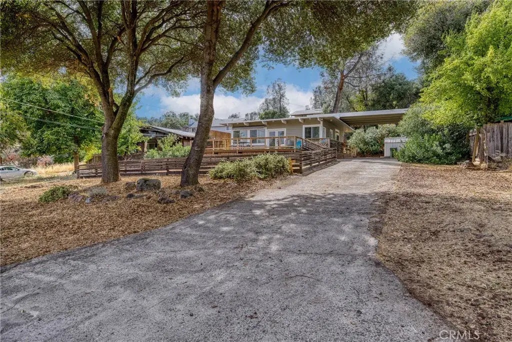 This charming modernized single-level mid-century style lake view home that has been recently upgraded to reflect modern styling. The home features new windows and French doors, laminate flooring throughout, and a light-filled great room with exposed beams and doors that open to a large front deck overlooking the lake. The modern kitchen is equipped with bar counter seating and tile countertops. The stainless steel appliances include a propane range, microwave hood, and refrigerator. The integrated dining room is elevated by a modern chandelier and is located off the French doors that lead to the wrap-around style deck, perfect for entertaining and barbecues. The residence includes two bedrooms that offer slider doors to the wrap around style deck, the rooms are full of naturallight. Thebathroom was updated with a walk in tiled shower, wainscotingand a single furniture style vanity. Outside, you will find an attached carport with built-in storage, a laundry room and a long, flat driveway that accommodates many cars. The front yard is fenced and is graced by oak trees and nature sightings. Located in Kelseyville Riviera, the home is close to schools, shopping, and the lake. Enjoy country living in a centrally located community in Lake County, California, just 2.5 hours from San Francisco and 2 hours from Sacramento.