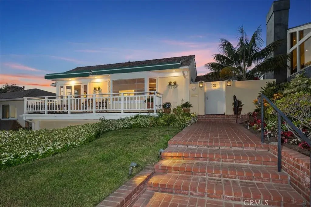 Nestled in the sought after, guard-gated community of Three Arch Bay, 27 S. La Senda is a rare coastal retreat offering sweeping ocean and Catalina Island views. Situated in one of Laguna Beachs most cherished enclavesrenowned for its residents-only beach access, scenic coastline, and community eventsthis home captures the essence of relaxed coastal lifestyle. Start your day with coffee or wind down at sunset on the expansive front deck, where you can watch pelicans glide by and boats drift across the horizon. Designed with primarily single-level living, the home features a bright and airy living room with vaulted ceilings, custom built-ins, a charming bay window, and rich wood panel detailing. French windows and doors frame ocean views and flood the interior with natural light. The adjacent dining area enjoys a picturesque ocean backdrop, while a secondary living space adjacent to the kitchen opens to a spacious, private interior courtyardperfect for entertaining or quiet reflection. Three generously sized bedrooms, each with French doors leading to the rear patio and yard, provide seamless indoor-outdoor flow. The spacious primary suite features vaulted ceilings, direct patio access, and a remodeled bath with walk-in shower. Additional highlights include a cozy sunroom, dedicated laundry room, and ample storage throughout. On the lower level, a separate bedroom and bathroom offer ideal guest quarters, home office space, or multi-generational living, along with direct access to the garage. A rare offering in Three Arch Bay, this home presents an exceptional opportunity to