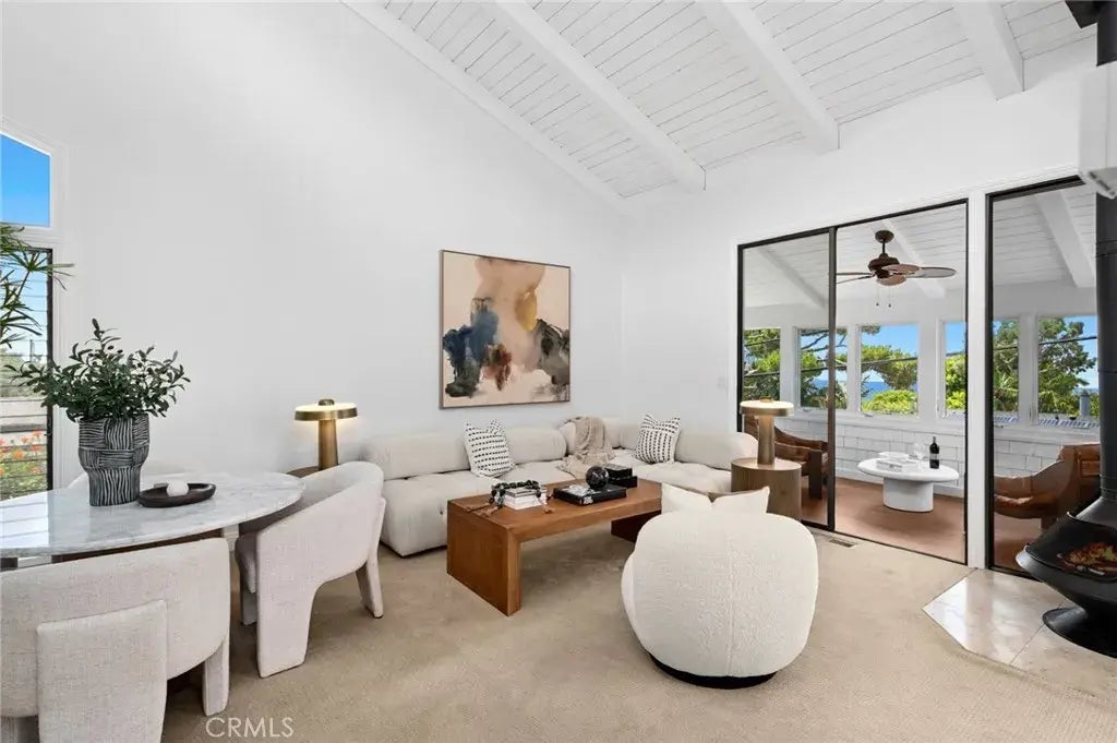 Iconic coastal living comes to life in this classic South Laguna cottage, set moments from the vibrant South Laguna Village and the pristine sands of Table Rock Beach. Thoughtfully positioned on an elevated corner lot, the home captures sweeping ocean views from both levels and features a generous front deck designed for effortless outdoor living. Inside, the airy open-concept design spans approximately 1,089 square feet, complemented by an additional 123-square-foot enclosed patio. Vaulted ceilings enhance the sense of space, while the main level showcases an open kitchen with bar seatingperfect for casual dining and entertaining. Two bedrooms and two bathrooms are thoughtfully arranged, including a spacious primary suite on the main level. Outdoors, the property is framed by colorful landscaping and offers parking for two in the garage, plus additional driveway parking. Enjoy proximity to world-class resorts such as the Montage, picturesque coves, sandy beaches, and Lagunas renowned collection of galleries, boutiques, and dining destinations. An exceptional opportunityperfect as a main residence or a second home.