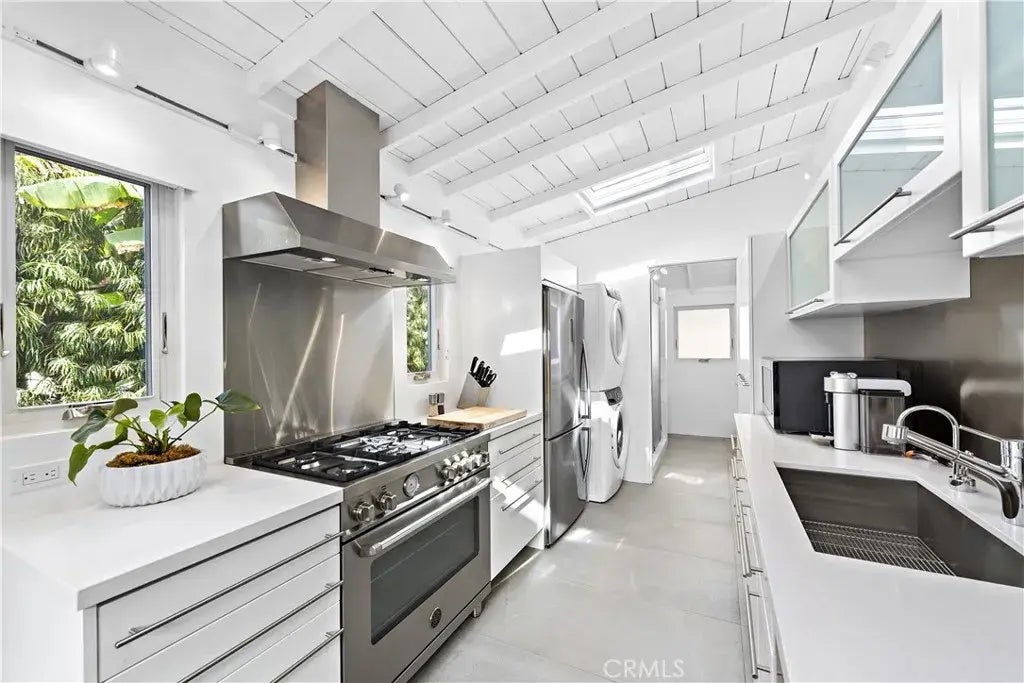 Unfurnished year lease- Beautifully renovated and landscaped modern two story cottage home located in North Laguna is easily accessed from either the rear alley or from Fairview St. This home features an open floor plan with kitchen open to living room and dining area complimented by large format grey concrete tile flooring which gives the space a sleek contemporary look. There is also a built-in entertainment center, energy efficient lighting, and an individually zoned heating and A/C system throughout. The kitchen offers top of the line appliances and custom stainless-steel backsplashes. An Electrolux washer/dryer is also included. The bathroom has a marble shower. Upstairs is a two carpeted ocean view bedrooms. A private patio is set outside the kitchen and 1-2 off street parking space includes an electrical car charging port. Close to all of North Laguna's beautiful coves, restaurants and shopping.