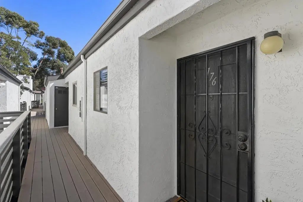 Reduced Price Freshly Updated Community! Bright and inviting top-floor 2-bedroom, 2-bath condo with a desirable split floor plan and no one above you. Features wood-like laminate floors (no carpet), abundant natural light, and 3 sliding doors leading to a spacious private balcony accessible from the living room and both bedrooms. Kitchen with appliances included, plus stackable washer/dryer in hallway closet. 2-car tandem garage + permit parking. Community improvements add to the appeal: the buildings are freshly painted (sellers building completed August 2025 and looks fabulous!) and new asphalt has just been finished in front of the building. Creekside amenities include a pool and two hot tubs, with convenient freeway access and close proximity to shopping, dining, and parks. A fantastic opportunity to own a top-floor home with a 2-car garage in Mira Mesa!