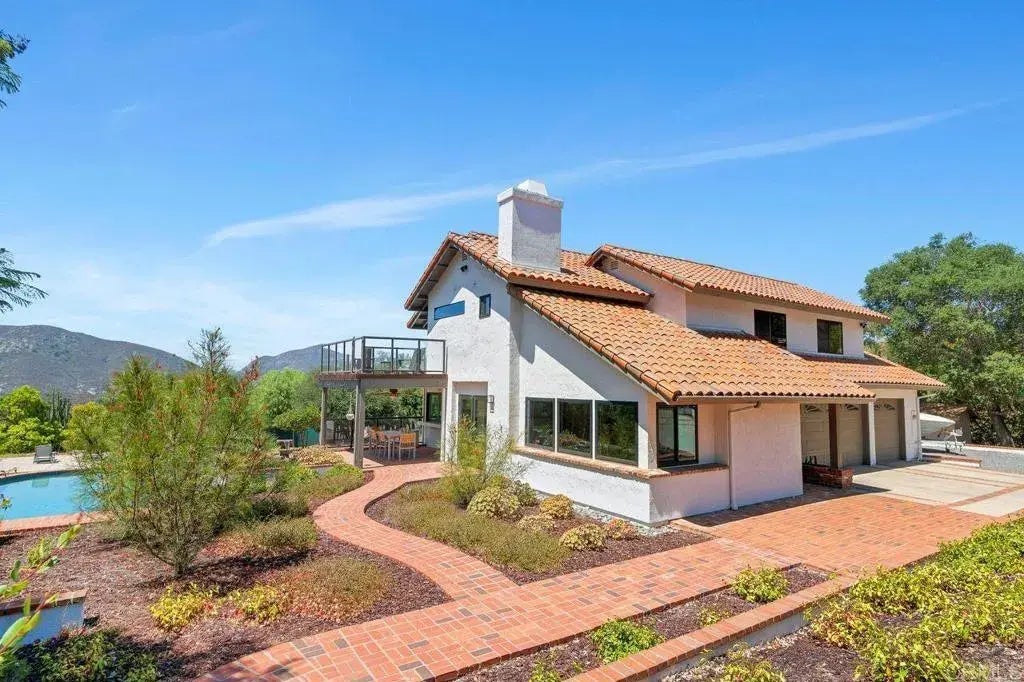 Stunning custom home on 1.33 acres in the highly desirable Lake Hodges area, offering panoramic views of the hills and mountains. This thoughtfully remodeled three-level residence blends indoor-outdoor living with high-end finishes throughout. Enjoy an oversized pool and spa, expansive patio space, and a gourmet kitchen featuring quartz countertops, Sub-Zero refrigerator, Wolf range, Fisher & Paykel dishwasher, and a La Cantina pass-through windowideal for entertaining. Custom cabinetry crafted by a master cabinetmaker enhances the kitchen, baths, and built-ins. Bathrooms feature Kohler fixtures, including a floating vanity and Native Trails vessel sink. The updated laundry room includes an oversized stainless sink, hidden outlets, and built-in ironing board. A dedicated mezzanine office offers sweeping views, while the primary suite includes a walk-in California Closet, beverage bar with Zephyr fridge, and a private view deck for sunset and sunrise moments. Luxury, privacy, and viewsthis Lake Hodges gem checks every box. Please make sure you check out the Drone Aerial Pictures and the Zillow 3D Tour Interactive Floor Plan attached.