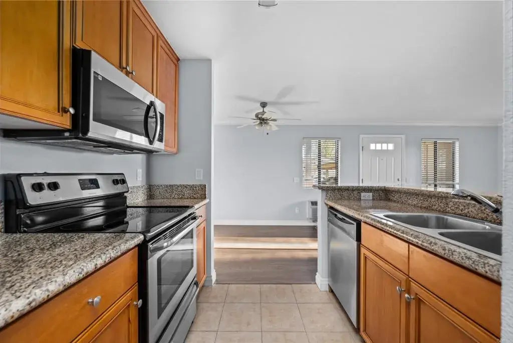 Charming and affordable 1 bed, 1 bath single-story condo in a quiet, gated communityFHA & VA approved! Features brand-new appliances, in-unit washer/dryer, granite countertops, and a covered front porch with park-like views. Community amenities include pool, spa, playground, and designated parking. HOA covers water and trash. Rare San Diego County find at a great price!