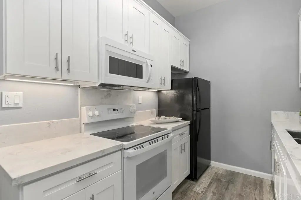 Seller will entertain offers between $459,000 and $499,000! REMODELED 1BD/1BA single level condo in the gated community of The Pines of La Jolla with a VIEW balcony. Highly desirable location in the complex - just one floor above the garage. Kitchen features newer white cabinetry, gorgeous quartz countertops, stainless steel sink and newer appliances. The bathroom was recently updated with a new vanity, custom tile and plumbing fixtures. Additional highlights include newer paint and baseboards, luxury vinyl flooring throughout and an elevator in the building allowing for easy access to the unit. The Pines of La Jolla features a pool and spa in a lovely garden setting. Excellent location within close proximity to UCSD, Doyle Park, beaches, and Westfield UTC for upscale shopping, dining and entertainment.