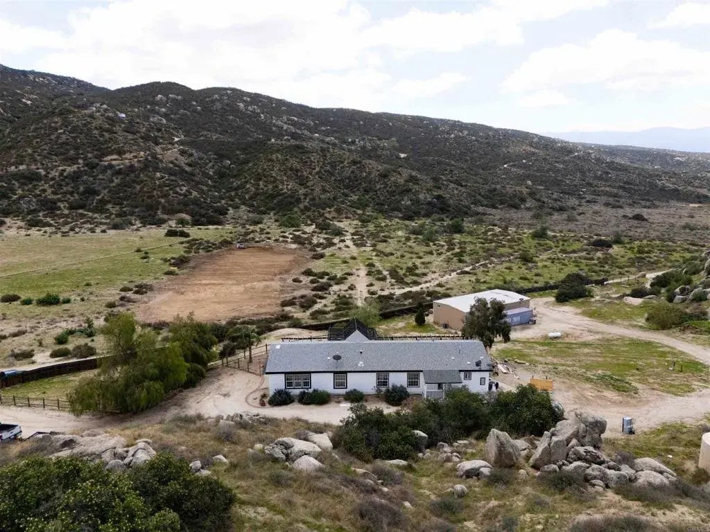 Welcome to Lewis Valley Your Private 40-Acre Ranch Retreat in the Hills of Hemet. If youre seeking serenity, privacy, and wide-open spaces, this property in Lewis Valley is a rare opportunity to own your own 40-acre ranch surrounded by rolling hills and breathtaking views. Property Features: Peaceful, secluded, and tucked away off a dirt road with no street noise. 2,400 Sq. Ft. Manufactured Home Recently remodeled with 3 bedrooms, 2 full baths, a spacious living room with vaulted ceilings, and an additional 600 Sq. Ft. bonus family room. Updated Interior Finishes Luxury vinyl plank flooring, new kitchen with updated cabinetry, counters, and hardware, fresh baseboards, and large dual-pane windows bringing in natural light and framing scenic views. Primary Suite Private bath with a walk-in shower, soaking tub, dual sinks, and ample storage. Generous Guest Bedrooms Spacious with picturesque views of the surrounding hills. Interior Laundry Room Convenient and functional. Outdoor Living: Expansive View Deck The perfect place to unwind and enjoy the gentle breezes and snow-capped mountains in the distance. Private Well & Pressure Tank Providing your own water source. Newer Roof Installed in 2007 for peace of mind. Ceiling Fans Throughout Adding comfort year-round. Workshop / Detached Building: 60' x 30' Steel Building A versatile space with electricity, water, and a separate septic system. Two Finished Rooms & Kitchenette Ideal for a guest suite, office, or studio. Large Workshop / Warehouse Area With roll-up doors and separate access driveway perfect for RV storage