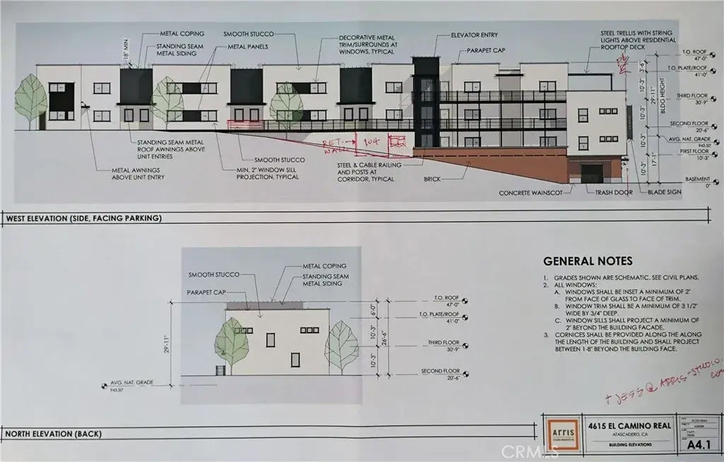 Conditional Use Permit approved for 16 units and commercial/retail space. Commercial lot in developing business zone in Atascadero. Soils report, Topo plan and easement description are available. Attached are plans for 3 story building.