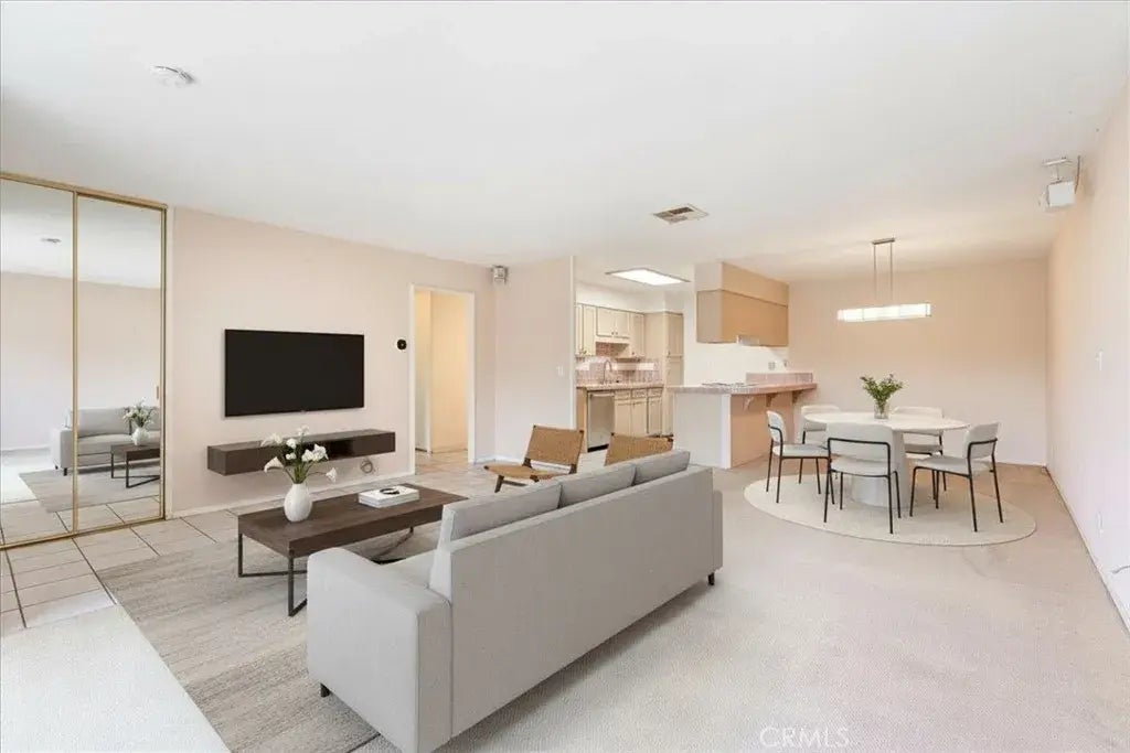 One or more photos have been virtually staged. The spacious light-filled living room opens seamlessly to a private courtyard through sliding glass doors, creating a perfect setting for indoor-outdoor entertaining or peaceful relaxation. The light-filled kitchen with plenty of cabinets features a skylight and plenty of room to add a center island. Just off the kitchen, a discreet in-unit laundry closet provides everyday practicality without compromising style. A detached 2-car garage adds convenience and ample storage space. Residents of Moulton Parkway One enjoy access to a sparkling community pool and picnic area just across the street. Only a short stroll away is Iglesia Community Park, featuring an array of amenities including playgrounds, sports fields, tennis and volleyball courts, and a multi-use court with basketball hoop. Conveniently located near shopping, dining, parks, and major freeways, this home offers an unbeatable combination of location, lifestyle, and livability.