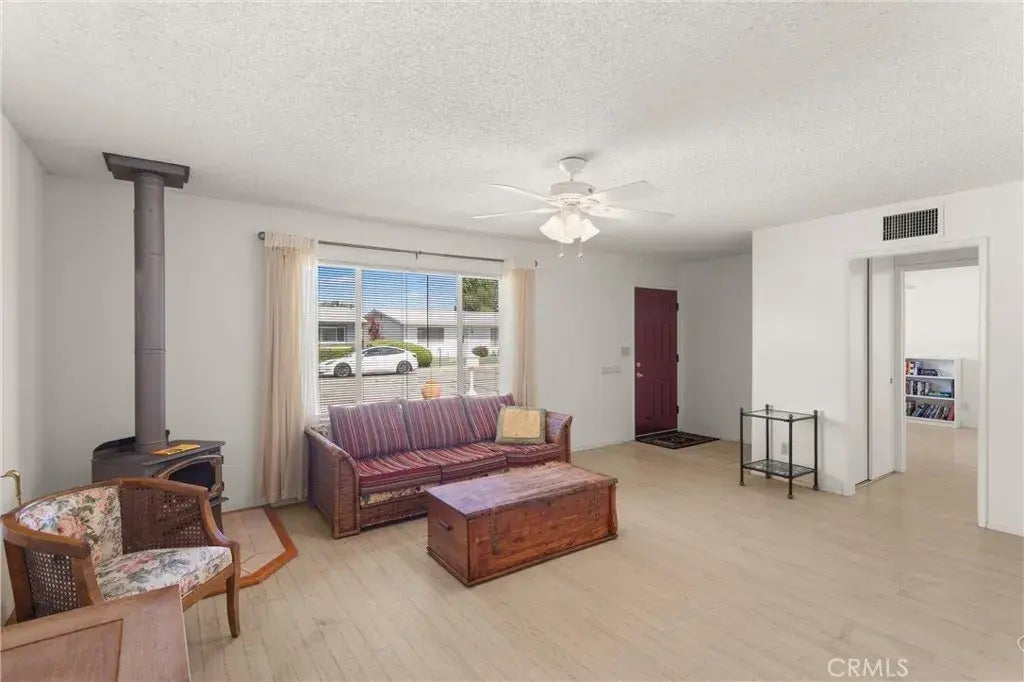 Welcome Home! This charming two bedroom, one bathroom home offers a spacious bonus room/ flex space off the dining room that opens to the backyard. Enjoy your private laundry room, complete with a utility sink, ideally located off the the bonus room and garage. The kitchen has tile floors and a good amount of cabinets. Both bedrooms are spacious and have large closets. The two hallway closets also provide an abundance of storage space. Enjoy the community pool and amenities on the warm summer days and cozy up next to the quaint wood burning stove in the winter. The backyard has an access gate to the community pool and horse shoe pits, etc. Ample natural light throughout the home. Additional features include central air conditioning, ceiling fans, tiled and laminate flooring throughout and a newer water heater. Located in the 55+ Sun Park II community and in convenient proximity to parks, restaurants, shopping and more!