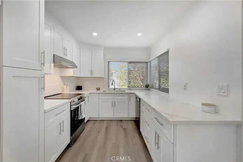 This beautifully remodeled condo is waiting for you! The kitchen has brand new solid wood cabinets with soft close doors along with stainless steel appliances and sink. Beautiful new quartz countertops and tile backsplash. Open floor plan with a spacious living and dining area. Beautiful new Luxury Vinyl Plank flooring throughout. There's a walk in laundry room with cabinets for extra storage. The bathroom has a brand new sink and vanity. The shower and bathtub is also new with beautiful tile. The primary bedroom is spacious and has a walk in closet with built ins for extra storage. The second bedroom is spacious with an attached closet. All the windows and screens are brand new and keep outside noise out. A brand new air conditioner has also been installed and is set up with a Nest system so you can turn it on and off with your phone. This is an upper unit that is by itself so you don't share any walls. There is a cozy patio in the front of the unit that is good for sitting outside or having a BBQ. Directly below the condo is 2 designated parking spaces with 6 large storage cabinets. This is going to go fast!