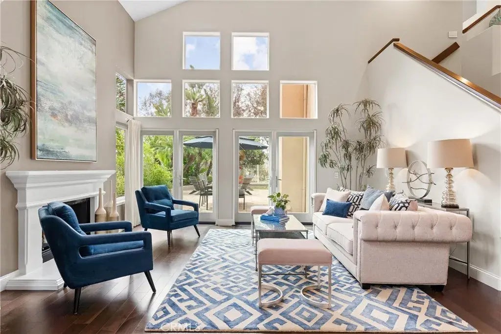 This stunning remodeled home blends modern luxury with coastal charm, designer finishes throughout, and canyon & peekaboo ocean views. Entering the light-filled home, enjoy luxurious Mirage walnut floors, French doors, newer windows, recessed lighting & designer light fixtures throughout, as well as elegant crown molding with accent lighting in the dining room. The gourmet kitchen is a chefs dream featuring newer cabinetry with self-closing wood drawers & pull-outs, soft close doors, quartz counters, and an enlarged island with wine fridge & sink. Premium appliances include a Viking 5-burner cooktop, pot filler faucet, newer built-in KitchenAid 42" refrigerator, Fisher & Paykel dishwasher drawers, GE Monogram convection oven, convection microwave, plus a generous walk-in pantry and reverse osmosis with insta-hot dispenser. Upstairs, the primary suite offers high ceilings and ocean glimpses, complemented by a spa-inspired bath with radiant heat floors, a Sani-jet soaking tub, rain shower, towel warmer, and walk-in closet. Additional highlights include a permitted loft, 3 additional bedrooms (one with custom office built-ins), upgraded baths with premium fixtures, a porcelain tile wall in the powder, Toto toilets throughout, newer garage doors, and on a single loaded cul-de-sac street! Every detail has been considered, from dual Nest thermostats, attic fan, whole-house water softener, and epoxy-coated pipes, to refined lighting and finishes throughout. Step outside to your private backyard retreat, designed for effortless entertaining and relaxation. Featuring an outdoor livi
