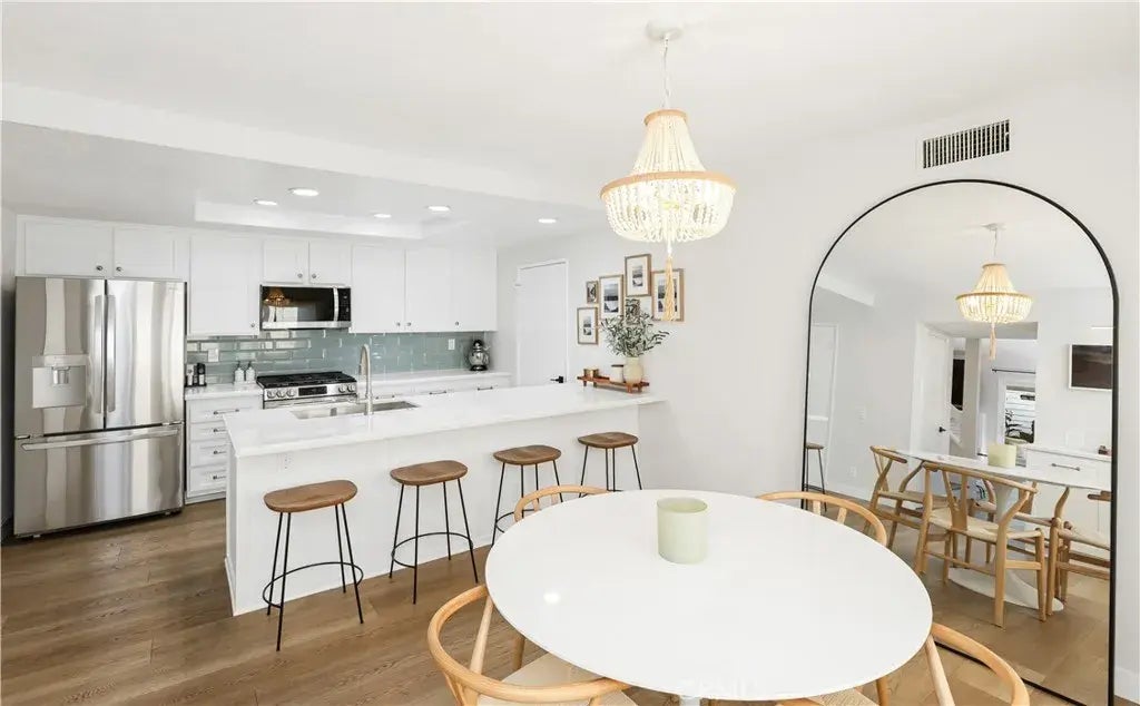 Welcome to this beautifully reimagined 3-bedroom, 2.5-bath residence in the highly desirable Camden Court community of Laguna Niguel. Thoughtfully renovated from top to bottom, this home blends timeless design with modern coastal flaircreating an inviting retreat just minutes from world-class beaches and resorts. Step inside to discover a bright, open-concept interior with vaulted ceilings, new luxury flooring, designer lighting, and a soothing neutral palette. The spacious living room features a white brick fireplace and large sliding glass doors that extend the living space to a private outdoor oasisperfect for effortless indoor/outdoor entertaining. The completely remodeled kitchen boasts custom cabinetry, sleek quartz countertops, a full-height glass tile backsplash, stainless steel appliances, and a large peninsula with bar seating for casual dining. Upstairs, the primary suite offers a tranquil escape with vaulted ceilings, dual windows for natural light, and a spa-inspired bathroom showcasing marble-style surfaces, dual vanities, brass fixtures, and a stunning arched walk-in shower leading to an organized walk-in closet. The private backyard has been transformed into an entertainers dream, featuring a covered lounge with built-in heaters and string lighting, a full outdoor kitchen with BBQ, smoker, and pizza oven, and a dining area framed by lush tropical landscapingideal for hosting friends or relaxing under the stars. Enjoy the best of Orange County livingjust moments from Salt Creek Beach, the Waldorf Astoria, the Ritz-Carlton, Dana Point Harbor, and the local fav